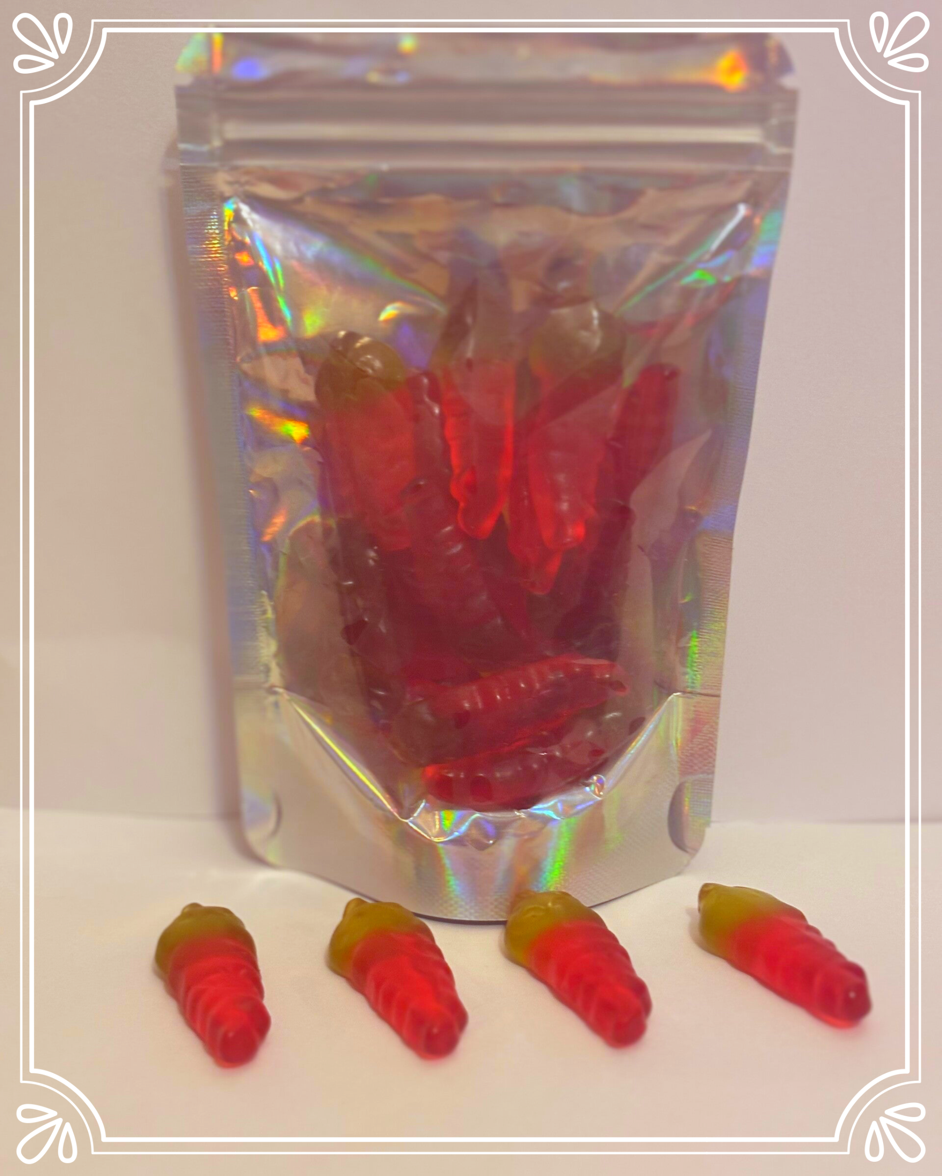 Zutaten: Glukosesirup Zuker Gelantine säuremittel Citronensäure Aromen natürliche Chiliextraten färbende Lebensmittel (Schwarze Johannisbeeren Karotten saflor spiunlina) überugstmittel Bienenwachs weiß und Gelb Camaubawachs
